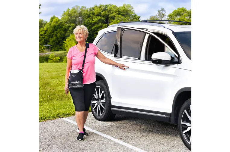 Includes the Freestyle Comfort unit (AS200-1), small 8-cell lithium ion battery (BT034-1), carry bag (MS396-1), shoulder strap (MS397-1), power supply with AC input cable (4997-SEQ), DC (vehicle) power cord (CD041-1), cannula and user’s manual.